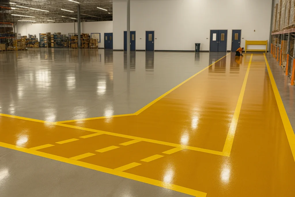 Commercial epoxy flooring is designed for places like shops, offices, and restaurants where traffic is moderate. It provides a nice finish and easy cleaning. Industrial epoxy flooring is made for factories, heavy warehouses, and garages — it’s thicker and formulated for the toughest abuse. Both types use epoxy resin, but industrial-grade mixes include extra aggregates and stronger chemistry to handle extreme loads. We offer both commercial and industrial epoxy flooring in Riyadh, and we’ll help you choose the right type for your facility’s demands.